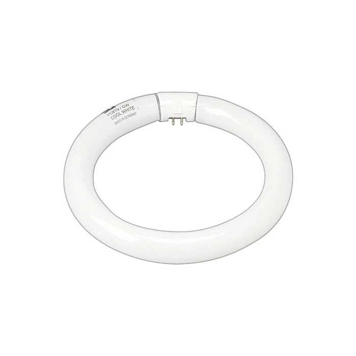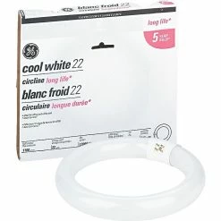 GE T-9 Circline fluorescent tube in cool white finish offers 1100 lumens of brightness and is suitable for use in basements as well as garages. 4-Pin Tube has G10q base and has 4100K color temperature.