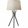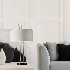 The Adesso Anderson table lamp is a modern, elegant styled table lamp. The brushed steel finish, white textured fabric shade, and black marble base make it a great match for a modern bedroom or living space. It features double sockets and pull-chain switches for your convenience.