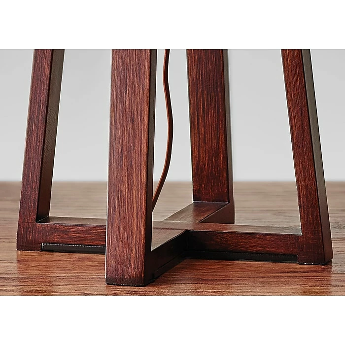 Influenced by vintage and rustic traditions, the Adesso® Quinn Table Lamp combines the texture of natural linen and the sleek warmth of a walnut finish on the crisscross base for a contemporary statement. The brown fabric cord adds to the vintage appeal. The 3-way rotary socket switch will only work with a 3-way light bulb, otherwise this lamp will function with simple on/off switch at its highest setting. This lamp is smart outlet compatible.