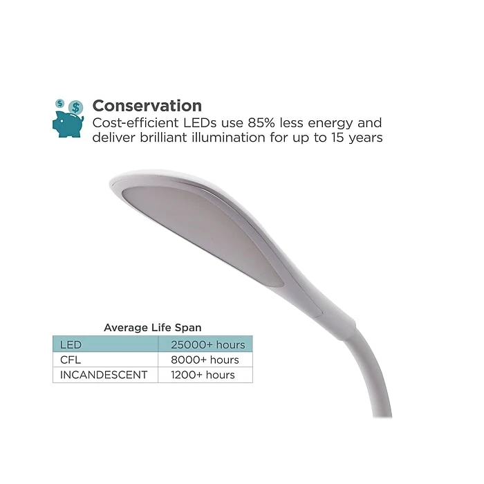 - Uses cost-efficient LEDs that last up to 50000 hours and utilize 85% less energy than incandescent lamps