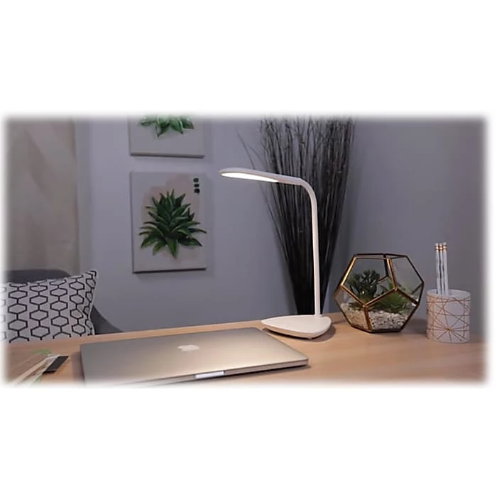 Taking on a simple and sleek look, this white desk lamp is great for on-the-go use. It has a built-in rechargeable battery that lasts up to four hours, so you can keep it on your desk or in the car for emergencies. It even is dimming so you can choose how much light you want to be released. Simply hold the power button to select the dimness level. This full-spectrum Black & Decker Minimalist LED desk lamp also includes a timer which you can operate if you choose. It automatically shuts off the lamp after 40 minutes. The silicone neck is great for finding the perfect light position. Did we mention this lamp mimics natural daylight? That’s right, crystal clear illumination so you can focus on any task at hand.