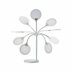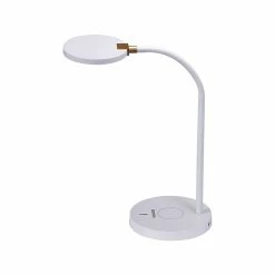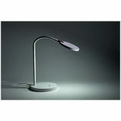 - Features a round lamp head with flexible silicone neck in a white finish