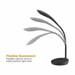 - Sleek and adjustable black lamp with flexible, silicone neck to easily position light zone