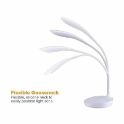 - Sleek and adjustable white lamp with flexible, silicone neck to easily position light zone