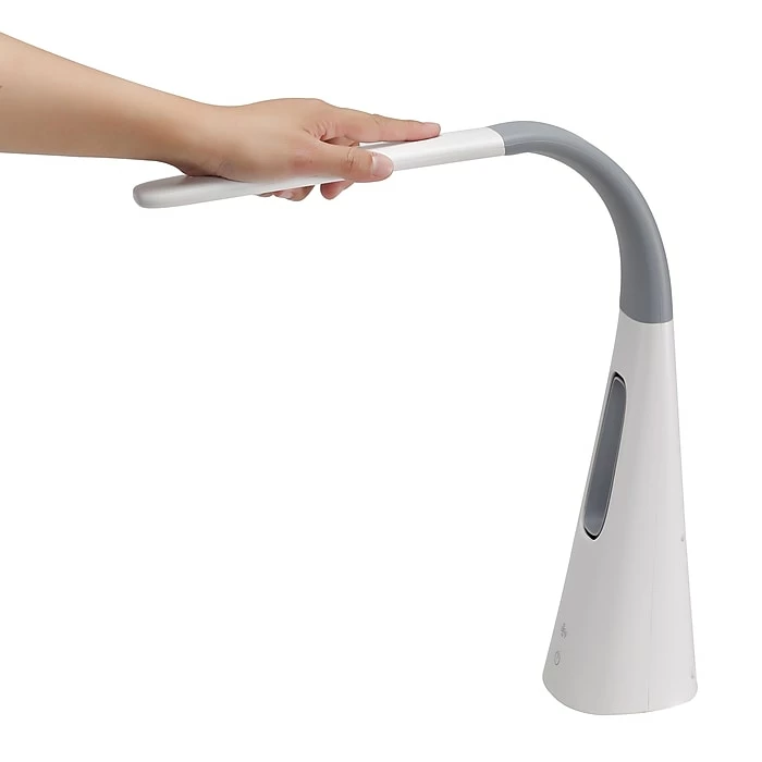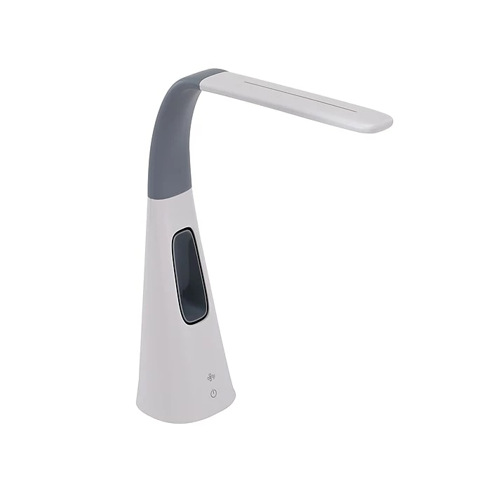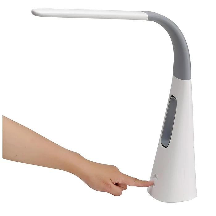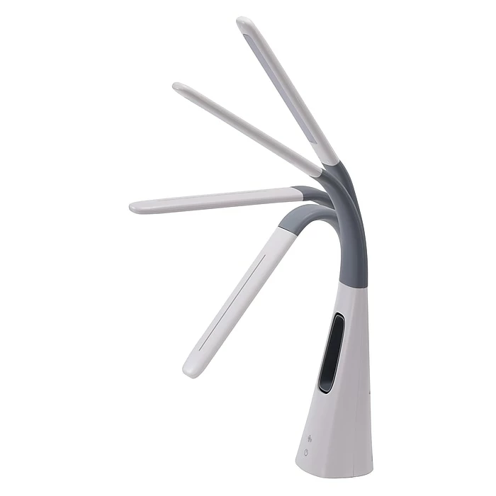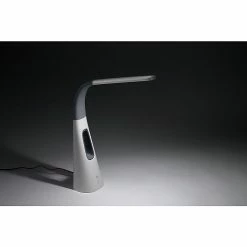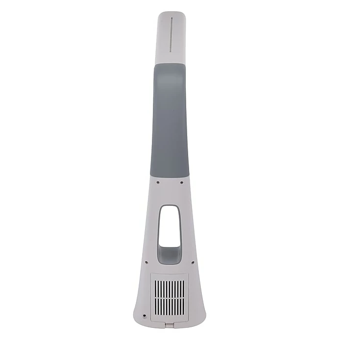Cool off with this Bostitch neat LED desk lamp with a bladeless fan. It offers stunning light and quality cooling, all operated by touch power controls. Quiet yet powerful, the fan has various levels of cooling, while the light itself has multiple brightness levels via the dimmer function. This gray and white lamp is bold as it features a unique shape but is perfect for any space that needs extra brightness. Place it on your desk at the office for reliable, crystal-clear light. The light zone emitted by this LED desk lamp is flicker-free and avoids shadows, halos, and glares. Adjust the position of light using the flexible neck.