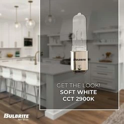 Bulbrite’s dimmable Halogen T4 bulbs are the perfect replacement for any Incandescent chandelier bulb due to their sleek design, and light output. Perfect for line voltage pendants, chandeliers, portable lamps, and track lighting applications . Full UV stop.
