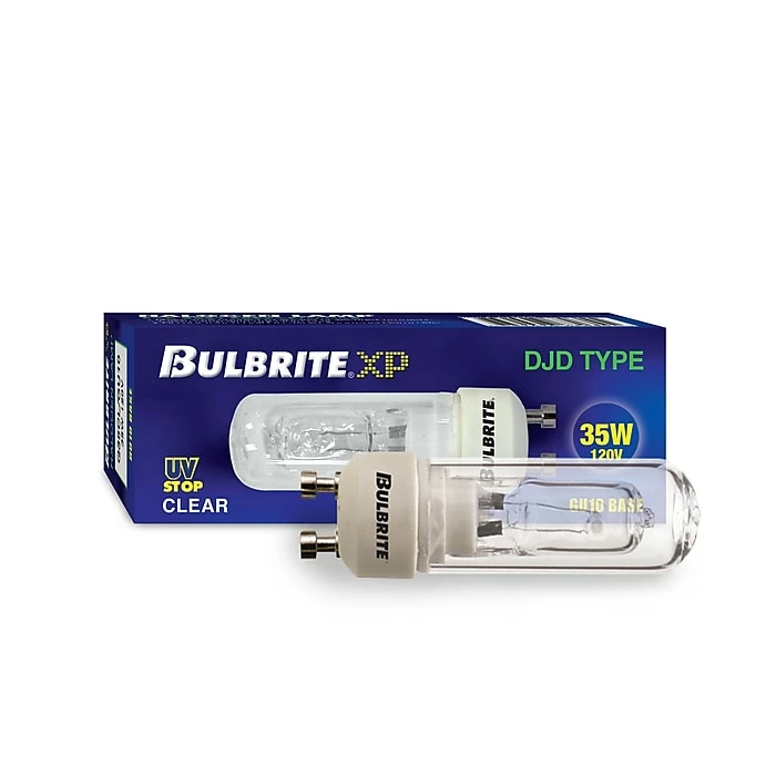 Bulbrite’s Halogen tubular DJD-type bulbs provide a more energy efficient alternative to standard household Incandescent’s by providing the same light output, and lasting longer. Ideal for GU10 pendants where a non-directional ambient light source is desired. Double glass envelope that eliminates the need for shielding.