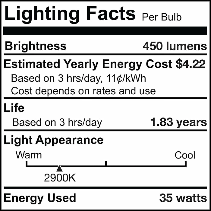 | Incandescent Equivalent Wattage | 31-45 |