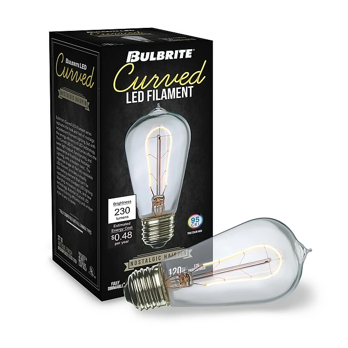 Bulbrite’s LED Filament series features the latest in LED technology with its Curved LED filament series. To better emulate the true style and look of traditional vintage light bulbs, Bulbrite’s innovative team engineered an LED that bends and lights up just like an incandescent filament would. These Curved LED Filament bulbs will add a vintage and stylish touch to any space.