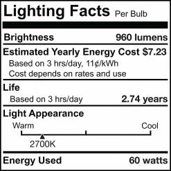 | Incandescent Equivalent Wattage | 46-60 |