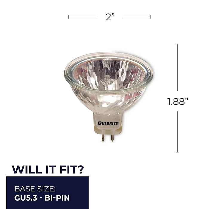 - MR16 shape with a Bi-Pin (GU5.3) base