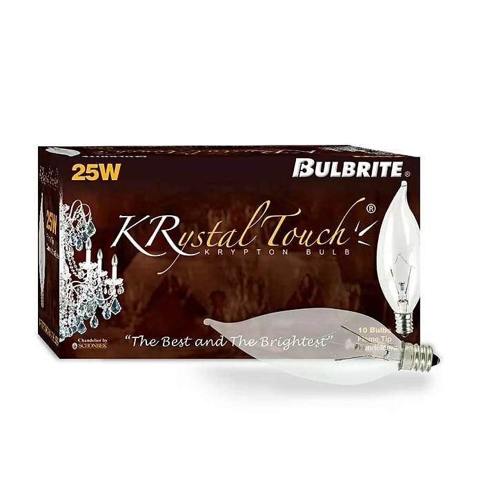 Bulbrite’s Krystal Touch Series bulbs are manufactured with Krypton and Xenon gas to create a crystal clear bright, white light as well as the added benefit of longer life. Ideal for decorative lighting in chandeliers, wall mounts, sconces and outdoor fixtures. Creates sparkling white light by eliminating the yellow dullness present in standard chandelier bulbs.