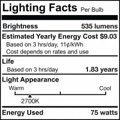 | Incandescent Equivalent Wattage | 61-75 |