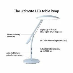 - Adjustable brightness up to 1500 lux and light color temperature from warm to cool white