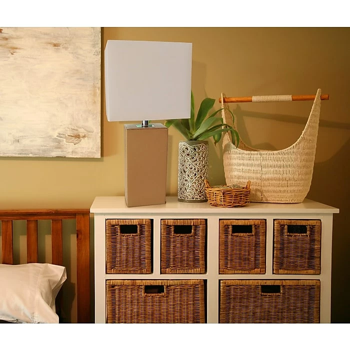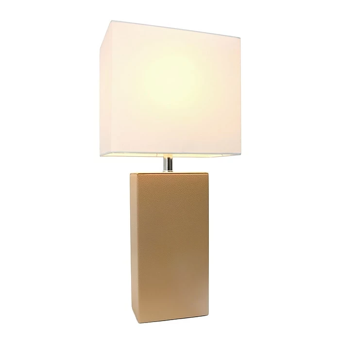 Elegant Designs Modern Leather Table Lamp with White Fabric Shade