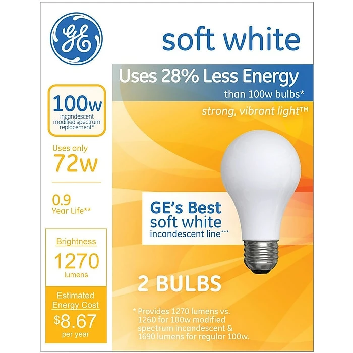 Saves energy, has similar lumens (light output) as a standard 100 watt but only uses 72 watts.