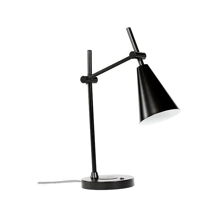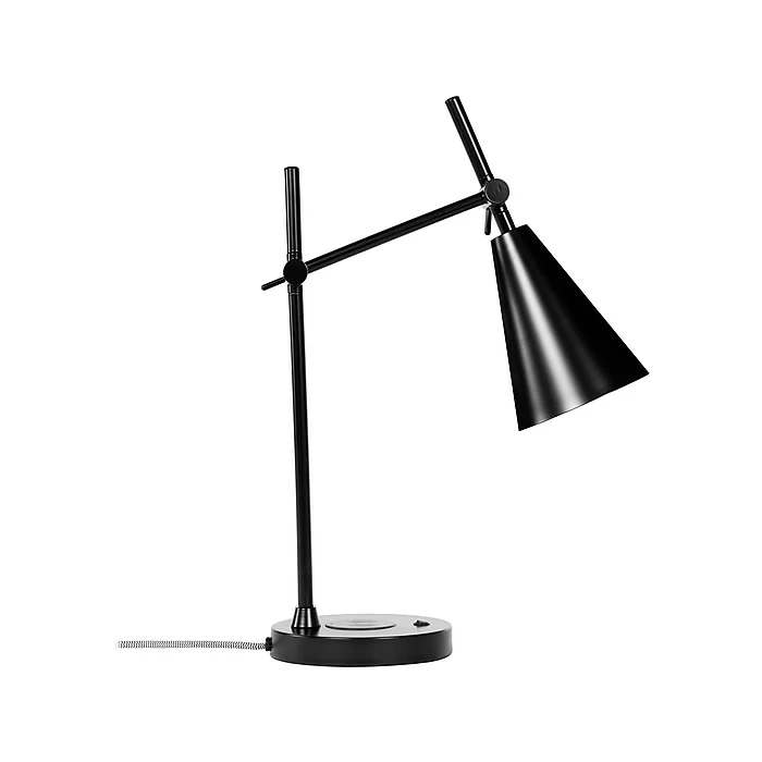 The Gry Mattr solid black desk lamp provides the perfect balance between form and function. Features wireless Qi charger and a USB port for convenient use. One E26 5W LED bulb is included, so you can use this lamp right after out the box.