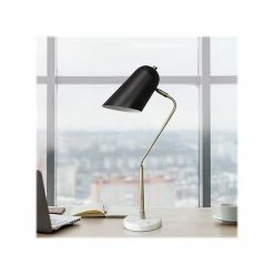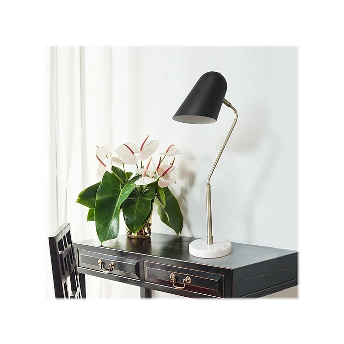 Modern and polished, this Lalia Home Studio Loft desk lamp is sure to add a touch of style to any room in your home. The antique brass metal arm and matte black angled metal shade are paired with a white marble base, the perfect mix of materials for an on-trend lamp. Great for your living room, bedroom, office, or anywhere you need to add a touch of sophistication.