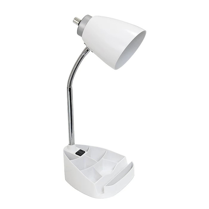 Style and functionality meet with this fun organizer desk lamp with iPad stand and charging port. It is beautifully finished and comes equipped to hold many of the important essentials needed in a desk organizer. The flexible chrome gooseneck allows you to point the light exactly where you need it. ON/OFF flip switch is located on the base for convenience. Organizer includes 8 compartments for storing pens, pencils, paper clips, etc. It also has a spot to rest your iPad, book, or notebook for easy viewing with a convenient charging port for the device you are using, or electronics near by!