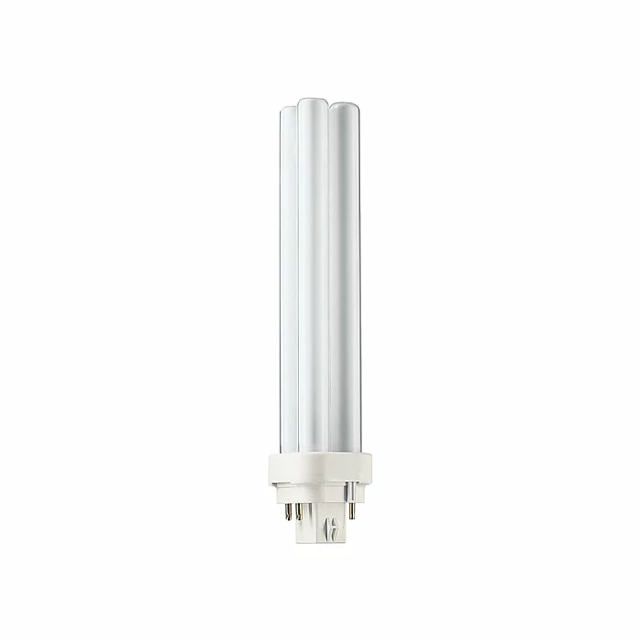 Illuminate an area for an average of 12,000 hours with this compact fluorescent PL-C lamp. The quad-tube design emits 1800 lumens of white dimmable light and a color temperature of 3500K. The Philips 26-watt compact fluorescent PL-C lamp has a G24q-3 base type to fit with various outlets.