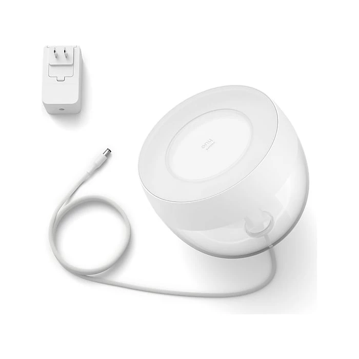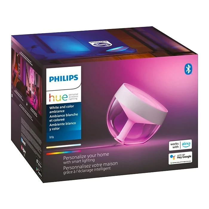 Set the mood in any room of your home with the stylish Philips Hue Iris lamp in white. With a light that both washes the wall with color and offers a gentle backlight, the Iris provides a sophisticated, unique effect. Add a Hue Bridge to unlock the full suite of smart lighting features.