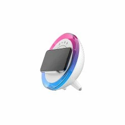 Rumi Lighting 12W LED desk lamp with wireless charger, Bluetooth speaker, and RGB light suitable for indoor usage. The lamp is made of ABS and comes in matte white finish. This lamp is perfect for the desk to illuminate all areas of the workspace.