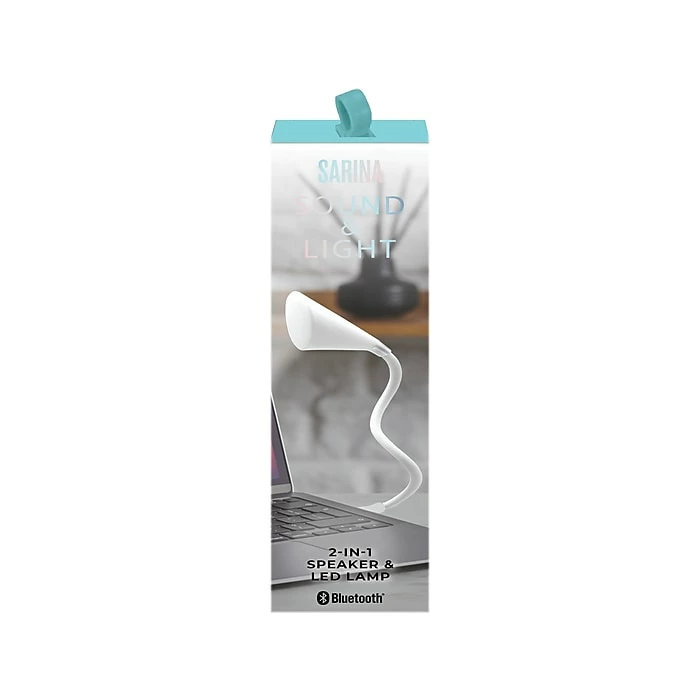 The Sarina two-in-one speaker and LED desk lamp features two brightness settings, warm and cool light, and 10 LED lights. Bluetooth 4.2 with 33′ range and a 2W speaker give you the opportunity to enjoy music while you are working