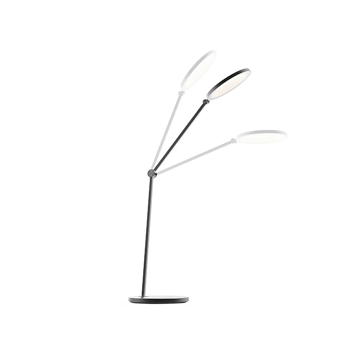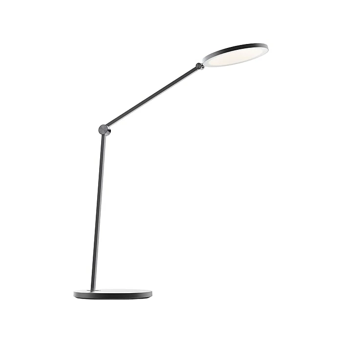 - Lamp head features an oversized flat-panel LED disk that diffuses high-output light in four different color temperatures through a glare-free polycarbonate lens for hours of productivity without the eyestrain