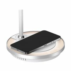- Contains a wireless charging pad, USB Type-A charging port, and a secondary dimmable LED night-light in lamp base
