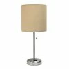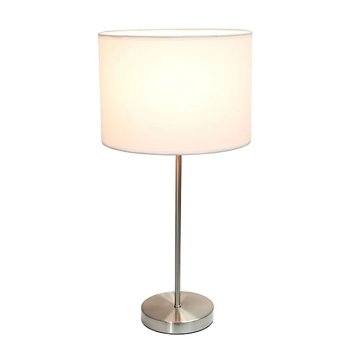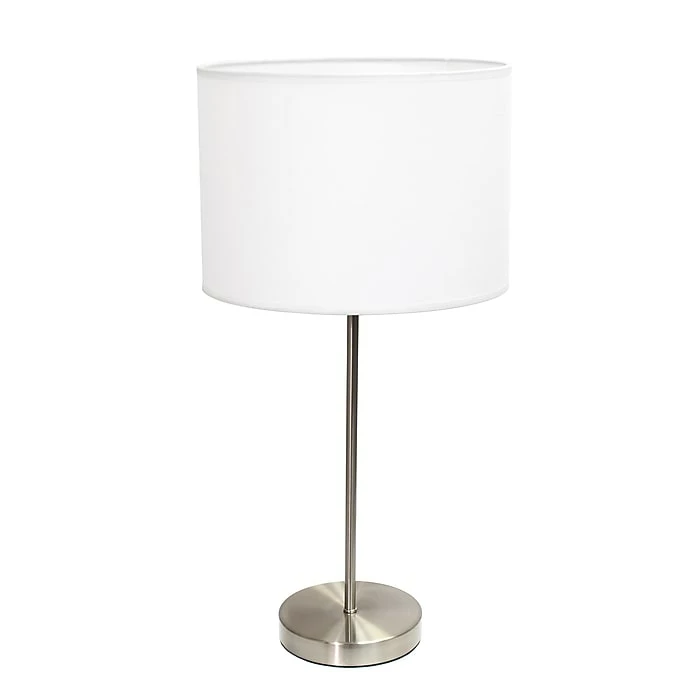 Simple Designs Brushed Nickel Stick Lamp with Fabric Shade, White
