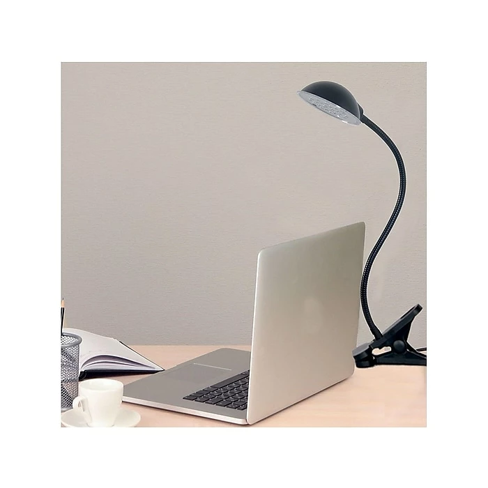 - Flexible gooseneck clip lamp takes up very little space, yet powerful enough to brighten any space