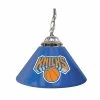 Trademark NBA Detroit Pistons 14″ Single shade gameroom lamp in blue color features polyresin shade construction with stainless steel finish and hanging chain measures 36″. Lamp has a maximum bulb wattage of 60 W and pull chain on/off switch.