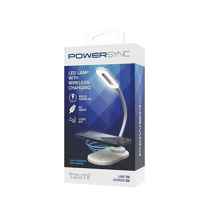 Stay illuminated and stay powered with the Tzumi PowerSync LED desk lamp with wireless charging. With a sleek, minimalist design, this flexible desk lamp combines functionality and style that is perfect for the home, office, and anywhere. Light up your workspace or bedside with eco-friendly LEDs while keeping your smartphone wirelessly charged and ready when you need it.