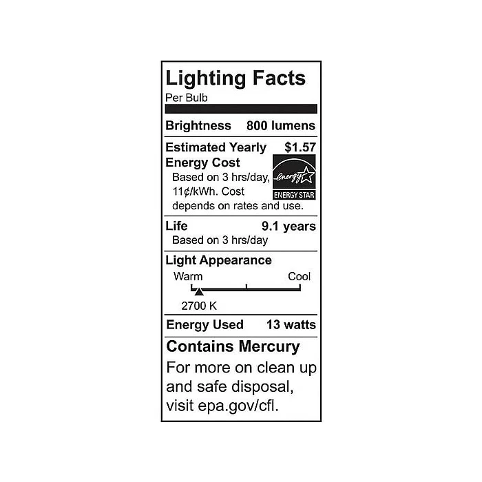 - Uses 13W CFL bulb (included) or one 60W incandescent bulb